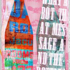 Seine Bilder sind ein Mix aus Techniken. Immer wieder scheint die Liebe zum Typografischen Detail in seinen Werken durch; meist dominieren Texte und Text Fragmente die Werke und verleiten den Betrachter zur Suche, zum Verweilen.